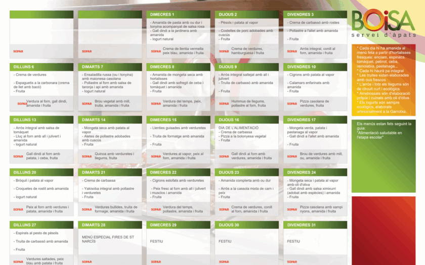 Versions imprimibles (pdf) dels menús: